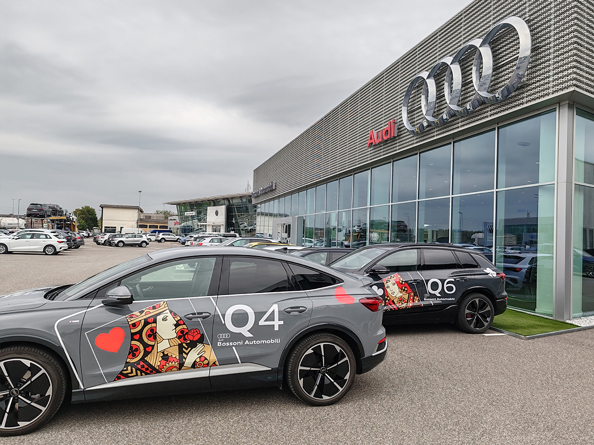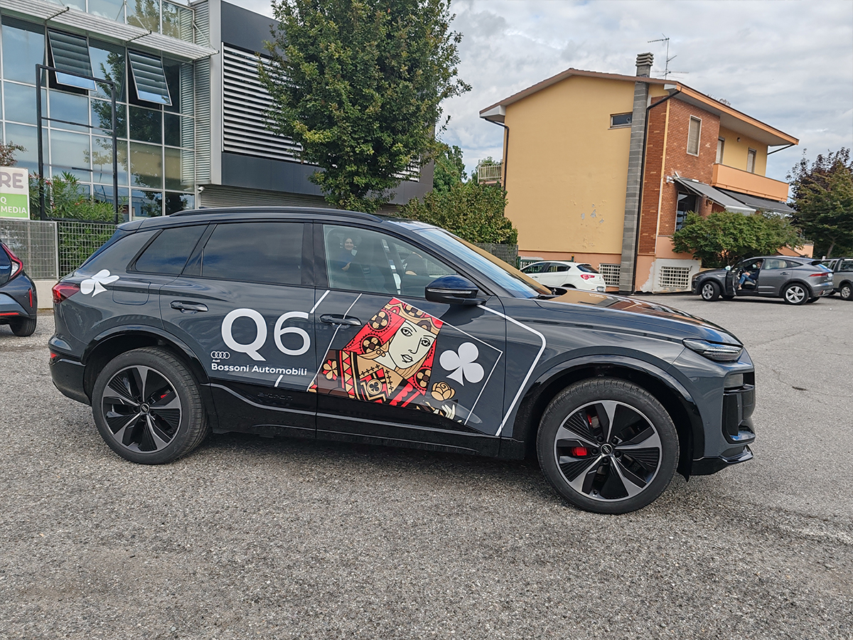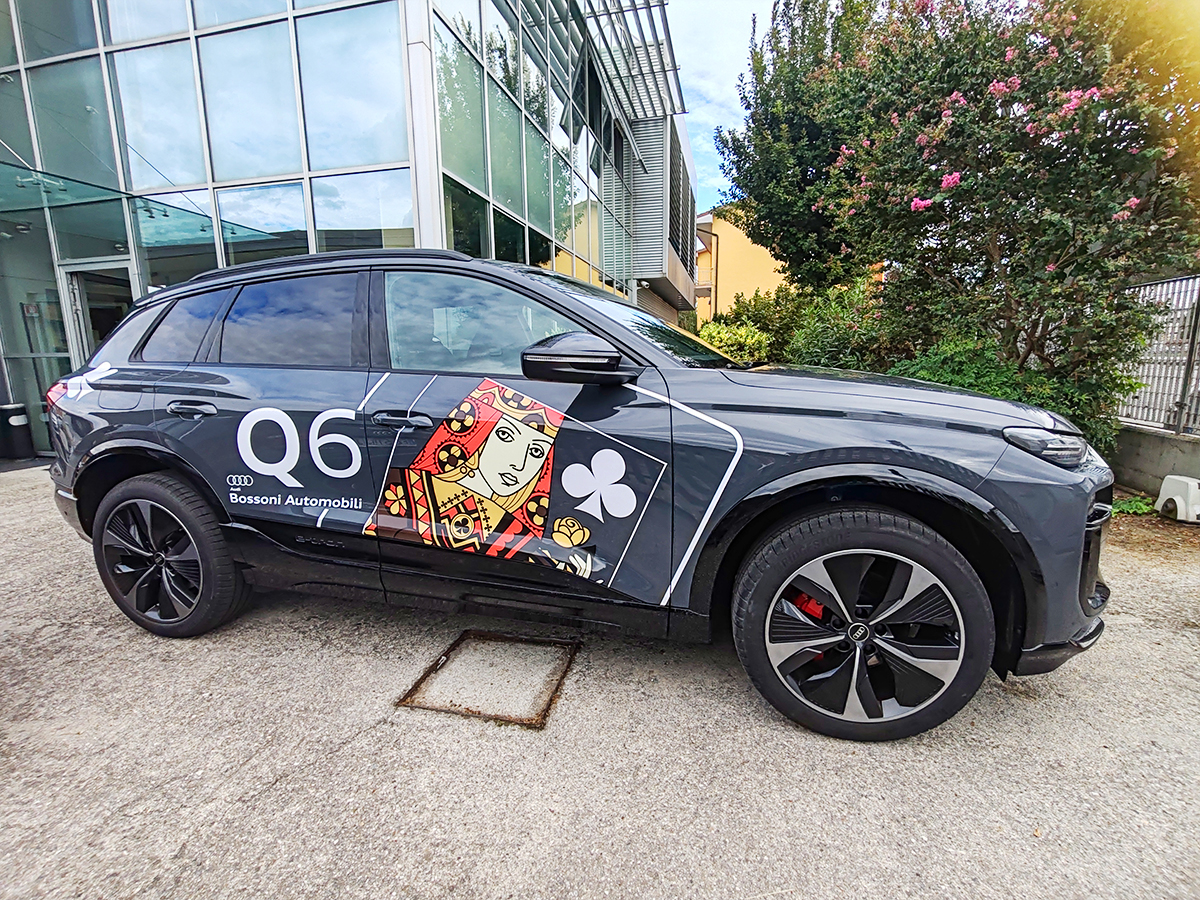 Con il car wrapping Audi Q6 e-tron abbiamo dato il nostro apporto alla 12esima edizione del Festival “I Mondi di carta”, tenutosi a Crema dal 5 al 13 ottobre 2024. Il titolo dell’edizione 2024 è stato “A che gioco giochiamo?”, dove il gioco viene inteso in svariate sfaccettature: attività ludico-ricreativa, fonte di apprendimento ed anche elemento provocatore per riflettere sulla contemporaneità in cui viviamo.