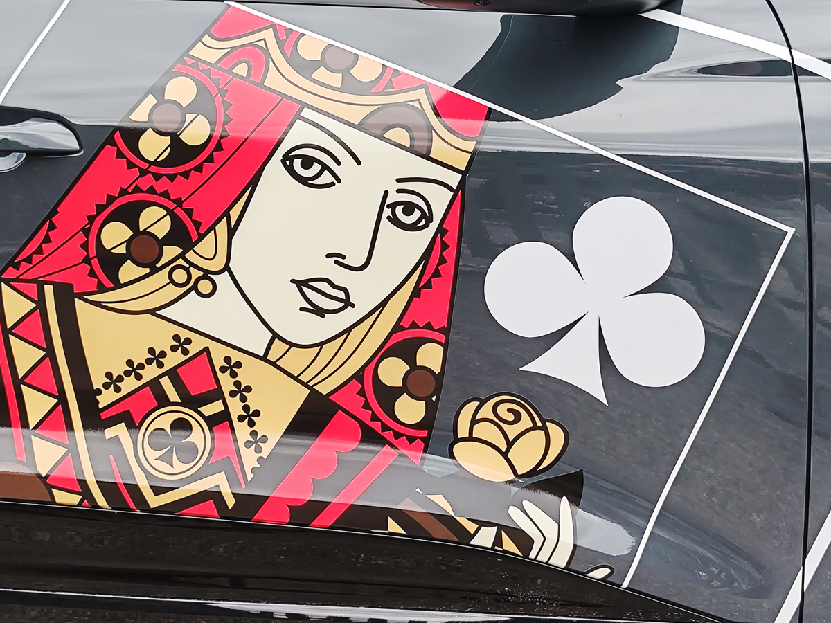 La scelta della carta da gioco, con la raffigurazione della Donna, vuole focalizzare l’evento sul grave problema della violenza sulle donne, l’unicità delle quali è rappresentata dal diverso seme delle carte da gioco. Sui 4 veicoli decorati con il car wrapping, infatti, le 4 carte da gioco della donna hanno un seme sempre diverso: fiori, cuori, quadri e picche.